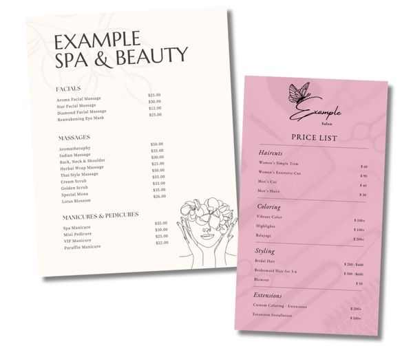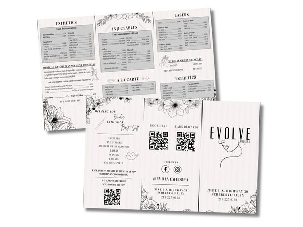 Custom creative documents including service and pricing sheets, brochures, product catalogs, event flyers, and more.